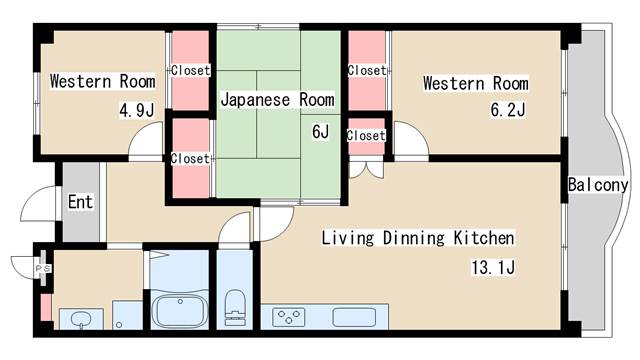 | 間取り | 3LDK | 間取り詳細 | 和室6 洋室4.9 洋室6.2 |