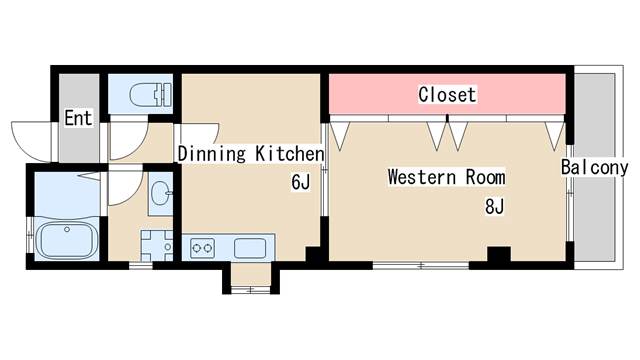 | 間取り | 1DK | 間取り詳細 | 洋室8 DK6 |
