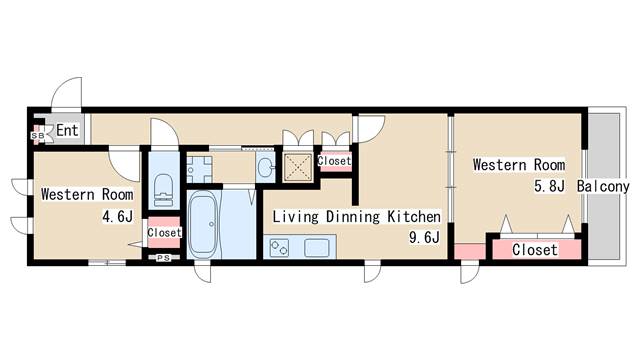 | 間取り | 2LDK | 間取り詳細 | 洋室4.6 洋室5.8 LDK9.6 |