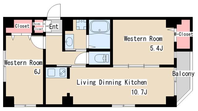 | 間取り | 2LDK | 間取り詳細 | 洋室5.4 洋室6 LDK10.7 |