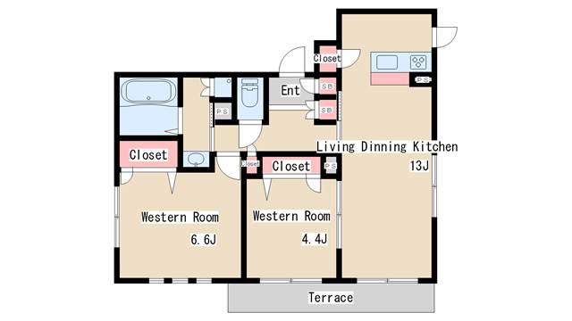 | 間取り | 2LDK | 間取り詳細 | 洋室4.4 洋室6.6 |