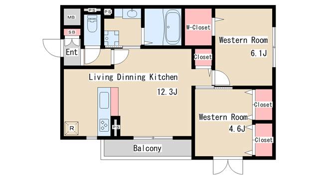 | 間取り | 2LDK | 間取り詳細 | 洋室4.6 洋室6.1 |