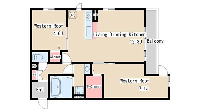 | 間取り | 2LDK | 間取り詳細 | 洋室4.6 洋室7.1 LDK12.3 |