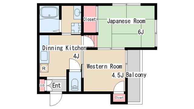 | 間取り | 2DK | 間取り詳細 | 和室6 洋室4.5 |
