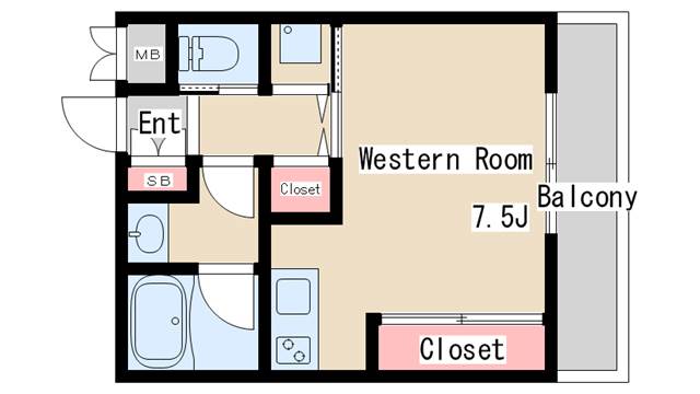 | 間取り | ワンルーム | 間取り詳細 | 洋室7.5 |