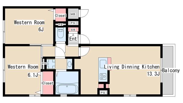 | 間取り | 2LDK | 間取り詳細 | 洋室6 洋室6.1 LDK13.3 |