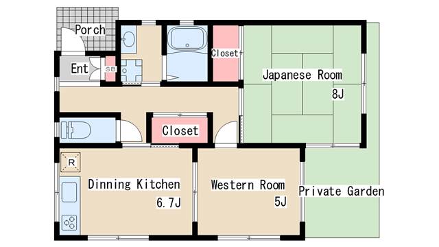 | 間取り | 2DK | 間取り詳細 | 和室8 洋室5 DK6.7 |
