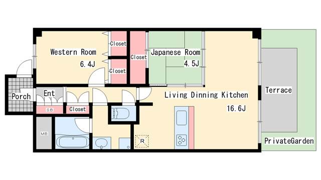 | 間取り | 2LDK | 間取り詳細 | 和室4.5 洋室6.4 |