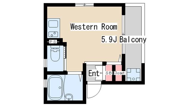| 間取り | ワンルーム | 間取り詳細 | 洋室5.9 |