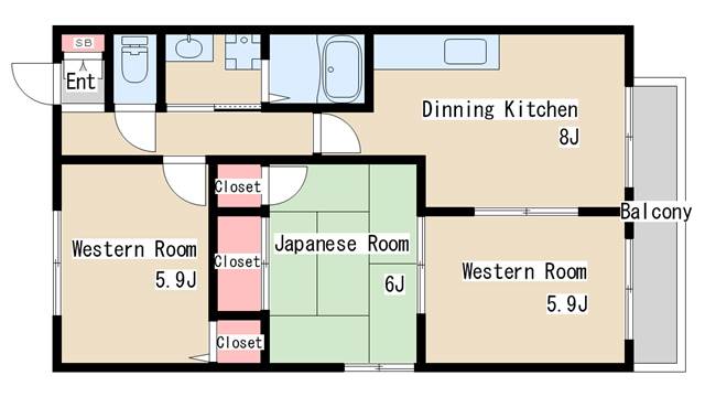 | 間取り | 3DK | 間取り詳細 | 和室6 洋室5.9 洋室5.9 DK8 |