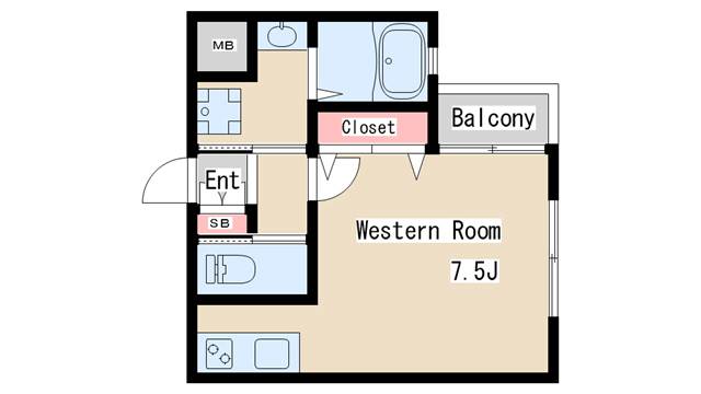| 間取り | ワンルーム | 間取り詳細 | 洋室7.5 |