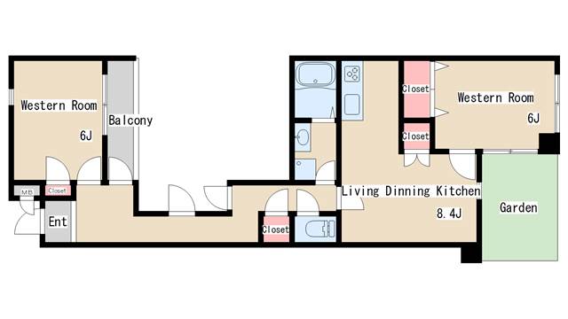 | 間取り | 2DK | 間取り詳細 | 洋室6 洋室6 DK8.4 |