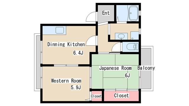 | 間取り | 2DK | 間取り詳細 | 和室6 洋室5.9 |