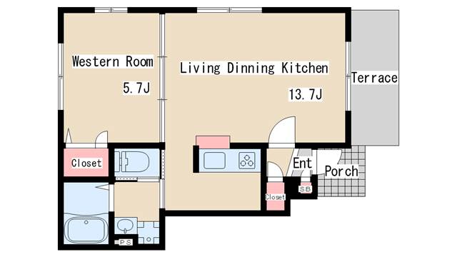 | 間取り | 1LDK | 間取り詳細 | 洋室5.7 LDK12.2 |
