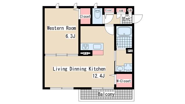 | 間取り | 1LDK | 間取り詳細 | 洋室6.3 LDK12.4 |