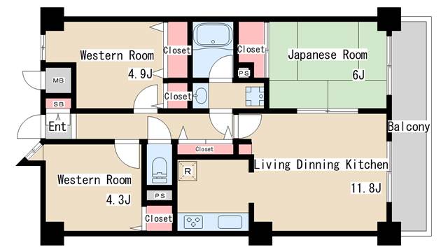 | 間取り | 3LDK | 間取り詳細 | 和室6 洋室4.3 洋室4.9 |