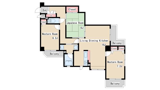 | 間取り | 3LDK | 間取り詳細 | 和室6 洋室6.2 洋室7.2 |