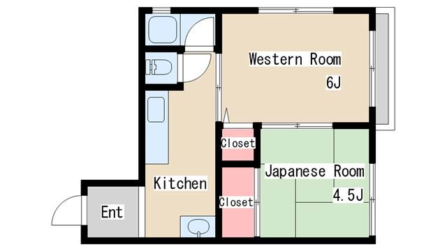 | 間取り | 2K | 間取り詳細 | 和室4.5 洋室6 |