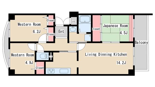 | 間取り | 3LDK | 間取り詳細 | 和室6.2 和室4.5 洋室4.9 |