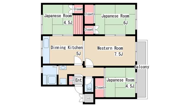 | 間取り | 4DK | 間取り詳細 | 和室4.5 和室4.5 和室6 洋室7.5 |