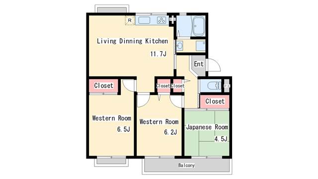 | 間取り | 3LDK | 間取り詳細 | 和室4.5 洋室6.5 洋室6.2 |