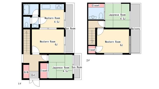 | 間取り | 4DK | 間取り詳細 | 和室4.5 和室4.5 洋室6 洋室6 DK4.5 |