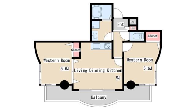 | 間取り | 2LDK | 間取り詳細 | 洋室5.6 洋室5.6 LDK9 |