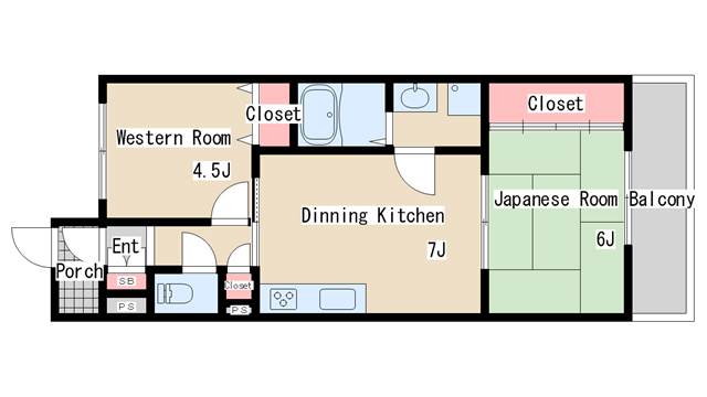 | 間取り | 2DK | 間取り詳細 | 和室6 洋室4.5 |