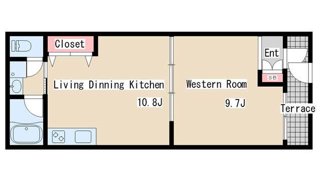| 間取り | 1DK | 間取り詳細 | 洋室9.7 DK10.8 |
