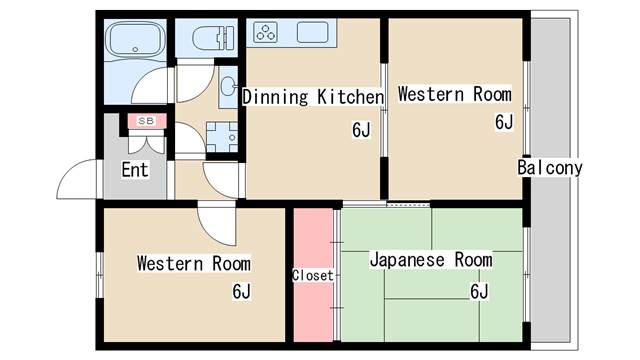 | 間取り | 3DK | 間取り詳細 | 和室6 洋室6 洋室6 DK6 |