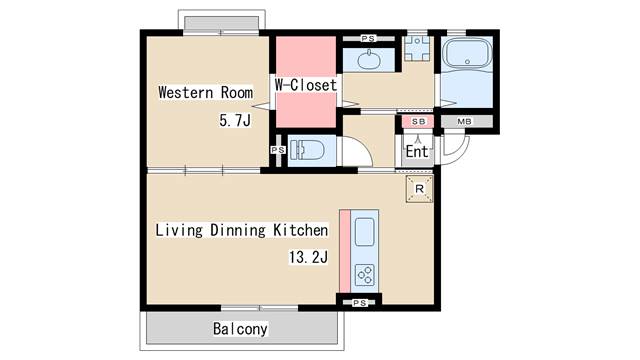 | 間取り | 1LDK | 間取り詳細 | 洋室5.7 LDK13.2 |