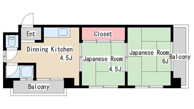 | 間取り | 2DK | 間取り詳細 | 和室4.5 和室6 DK4.5 |
