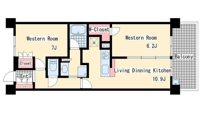 | 間取り | 2LDK | 間取り詳細 | 洋室6.2 洋室7 LDK10.9 |